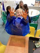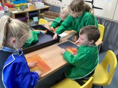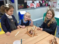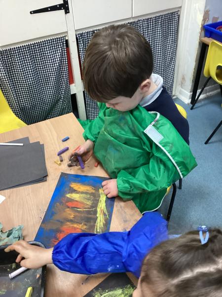 In Art we thought about the colours we can see in a fire and used pastels to mix the colours. Our hands got very messy!