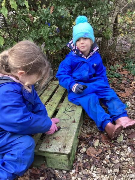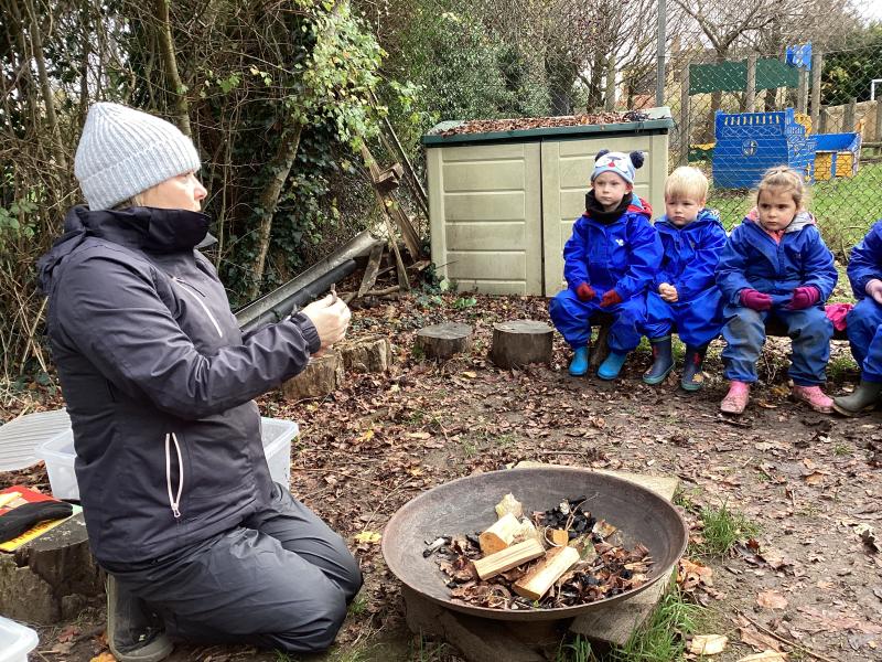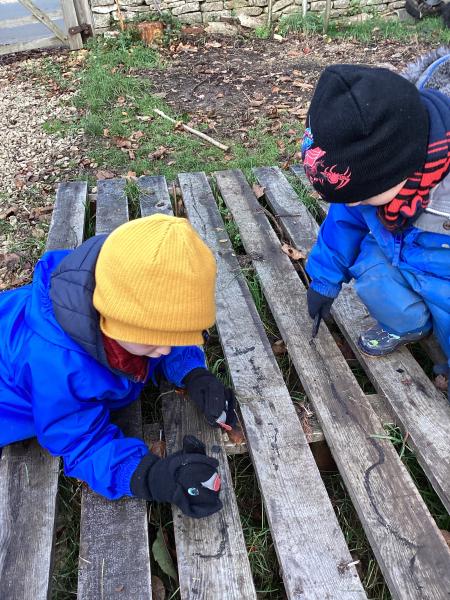 In Forest School this week we thought about fire as a source of light, and made our first fire. We knew that fire can be dangerous and so we needed to be safe when we have a fire. We noticed lots of charcoal in the bottom of the fire pit and we used this to do some mark making.