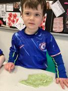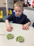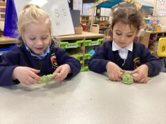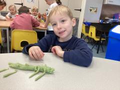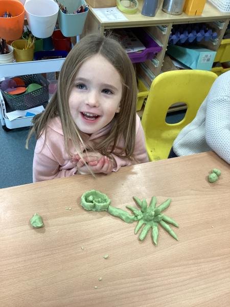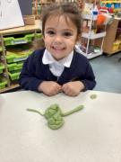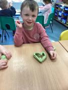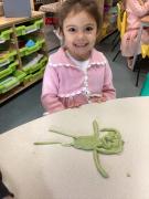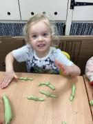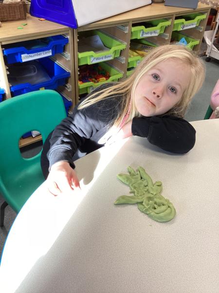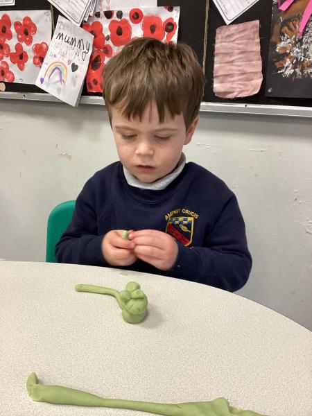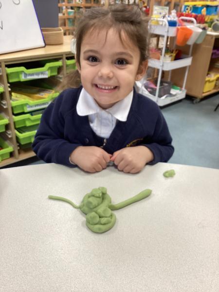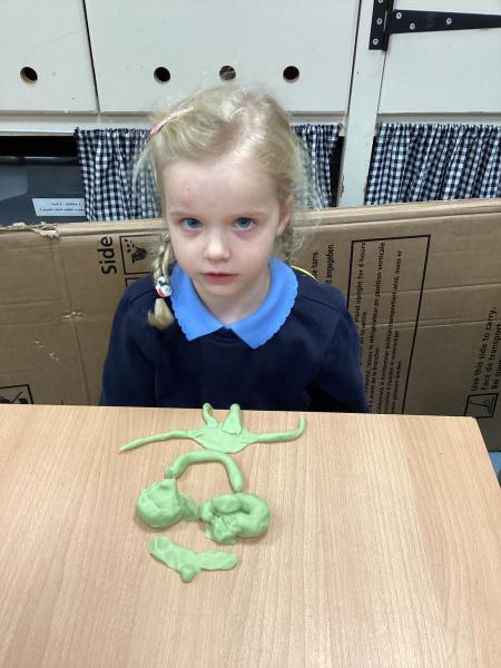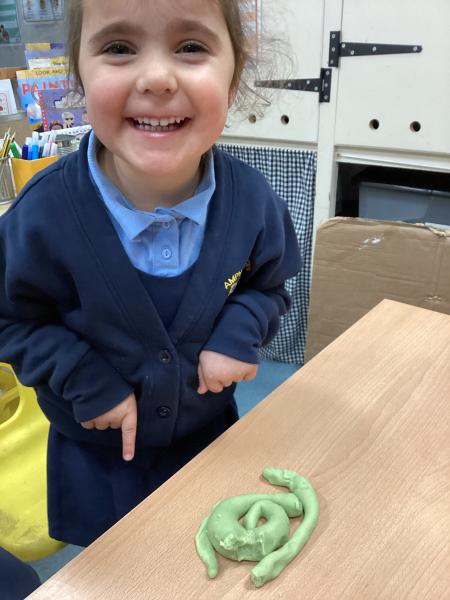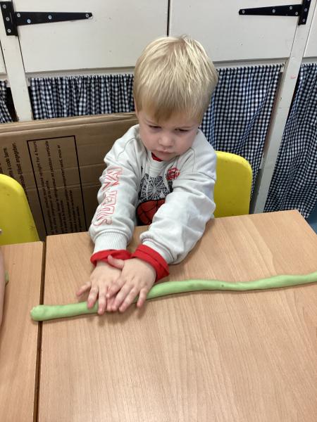 In Maths this week we were thinking about the number 8, we used the instruments to count out 8 sounds and made some music (see the video below!) We were amazing at stopping after playing 8 sounds. We also looked at length again and used the language longer than and shorter than to compare two lengths of objects. Outside we found two objects to compare and also during the challenge time after Dough Disco we used to think about length and make different length objects.