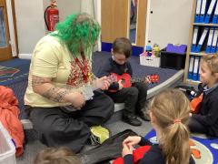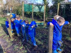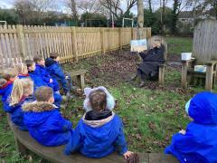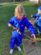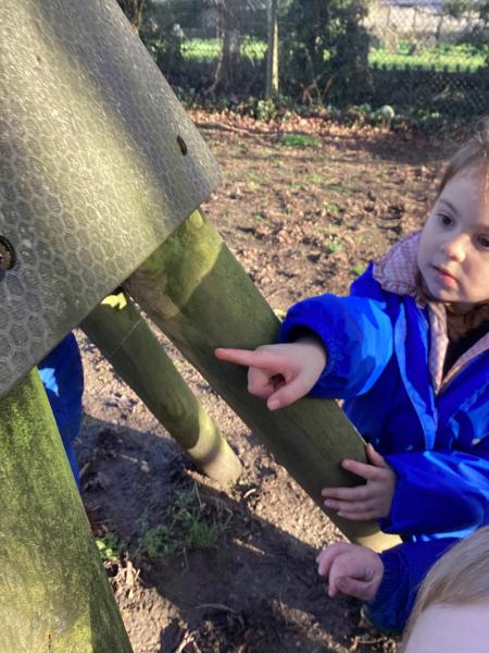 In Forest School this week we decided to embrace the rain and wanted to do some puddle jumping, but annoyingly we couldn’t find any! We used the chalks to paint the playground. We threaded leaves onto sticks and looked for bugs. We also found the first signs of our spring flowers appearing – snowdrops! We enjoyed going around the trim trail and did get rather muddy! At the end we read the story Clean Up by Nathan Byron, from our story vote, and decided we would like to do a litter pick next time in Forest School, which will be the week after next (due to Mrs Duffey being on a course next Friday afternoon). We also said we'd like to design some ‘don’t drop litter’ posters.