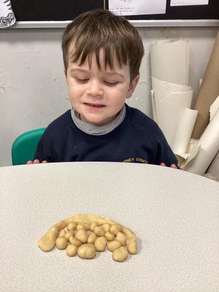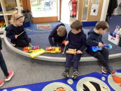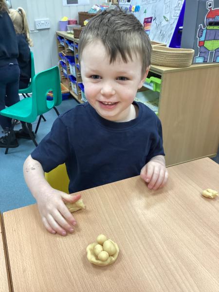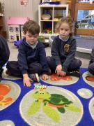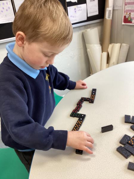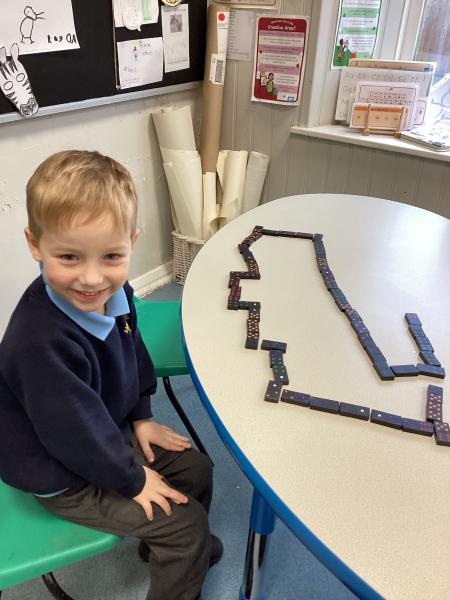 In maths we used the numicon to find pairs to 5. We had to prove that both 4 & 1 and 3 & 2 were correct. We partitioned 5 in different ways using the part, part, whole model. We used the pegs and boards to show different ways to make 5.