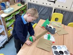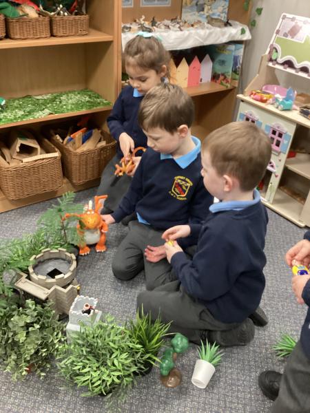 We loved thinking about castles during Explore and Learn and showed brilliant team building to construct our own towers and Zog small world. We loved using hammer and nails to build a castle using the tap taps and we made swords, shields and armor when junk modelling. Arlo brought in a book from home called ‘See Inside Castles’ and loved reading this with Mrs Duffey and his friends and sharing it with the class. We then compared it to photos of Warwick Castle and all the children were very interested in the historic martial sport of jousting. We watched a YouTube video on the War of the Roses, the jousting event that takes place daily at Warwick Castle.