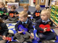 In our ukulele lesson this week we were all superstars as we read music! We played 2 songs and started to learn song 3. We learnt was a ‘c’ looks like on the ‘stave’ and that these notes are called crotchets. We are getting really confident at holding the ukulele’s.