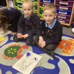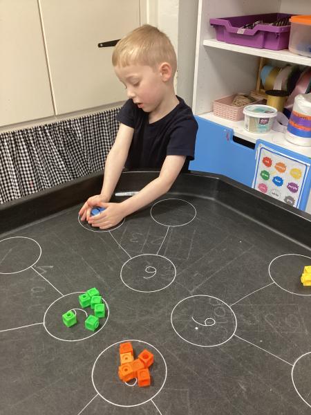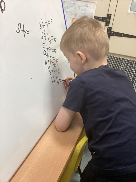 In maths we have been learning number pairs to 6. We used numicon and the part, part whole model to find the pairs. Some of us write the pairs on a whiteboard.