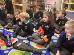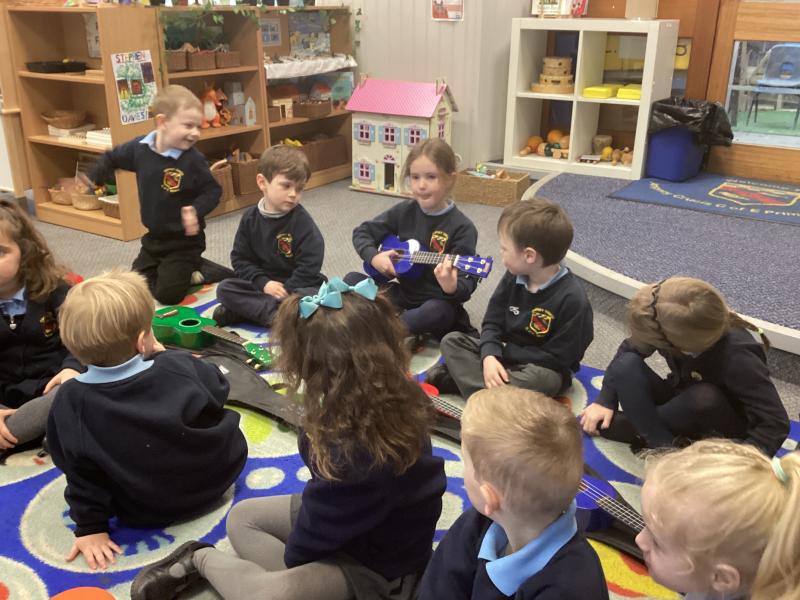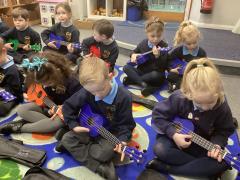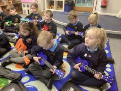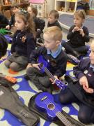 In music we continued learning the ukulele and we learnt about minims. We noted that crotchets are black and minims are see through and that they are 2 counts.