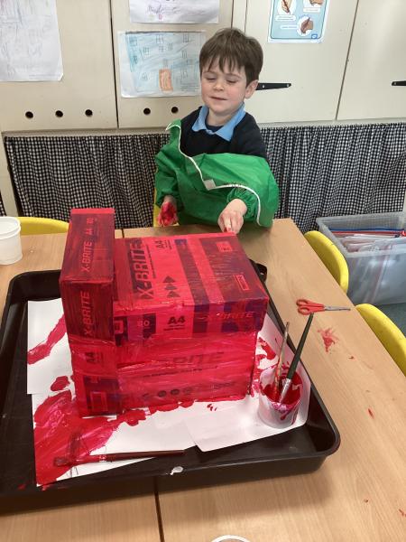 This week we continued to think about castles. We read the book There Was an Old Dragon Who Swallowed a Knight by Penny Parker Klostermann and thought about who else lived in a castle. We learnt new words for jobs people had – messenger (carried messages for the king outside the castle) herald (made announcements for the king inside the castle) and marshal (in charge of deliveries). We learnt that carpenters made things from wood. We wanted to be carpenters during Explore and Learn so we used our saws to pretend we were building things in the castle. We also started making our dragon ready for our Chinese New Year parade next week.