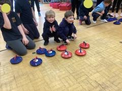 On Friday we had a whole school Olympic Winter Sports morning - we had such fun. The whole school was split into 5 teams and named different countires - we had the USA, Germany, Italy, Norway and Netherlands. We then rotated around different sports including curling, bobsleigh, ski jump and snowballs. We learnt about the Winter Olympics by watching a short video before we went into the hall to begin.