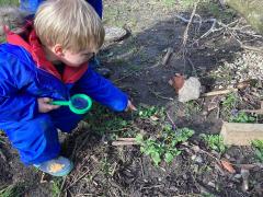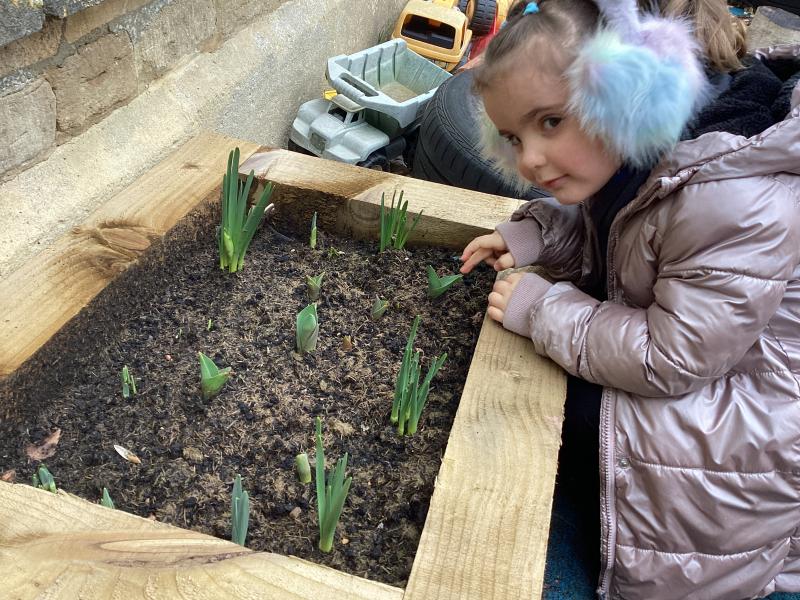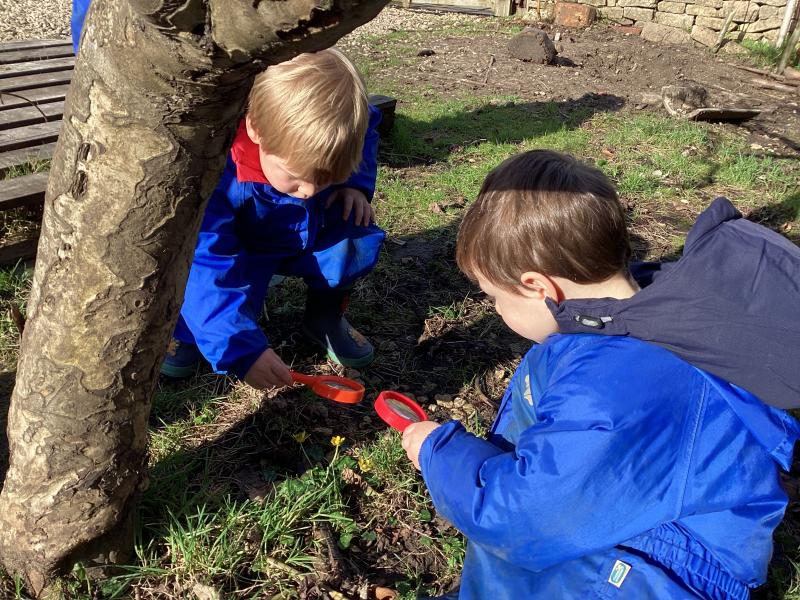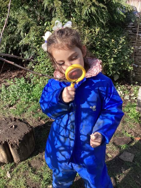 Welcome back after half term. It was wonderful to see some sun this week and the children all enjoyed being outside exploring the garden in some less soggy weather! We loved Forest School where we observed all the changes - we noticed that all the bulbs we planted have started to grow and observed that the leaves are different shapes - we learnt that the straight leaves will be daffodils and the curved ones will be tulips. We spotted signs of new life in the Forest School area and used magnifying glasses to look at the buds and the flowers.