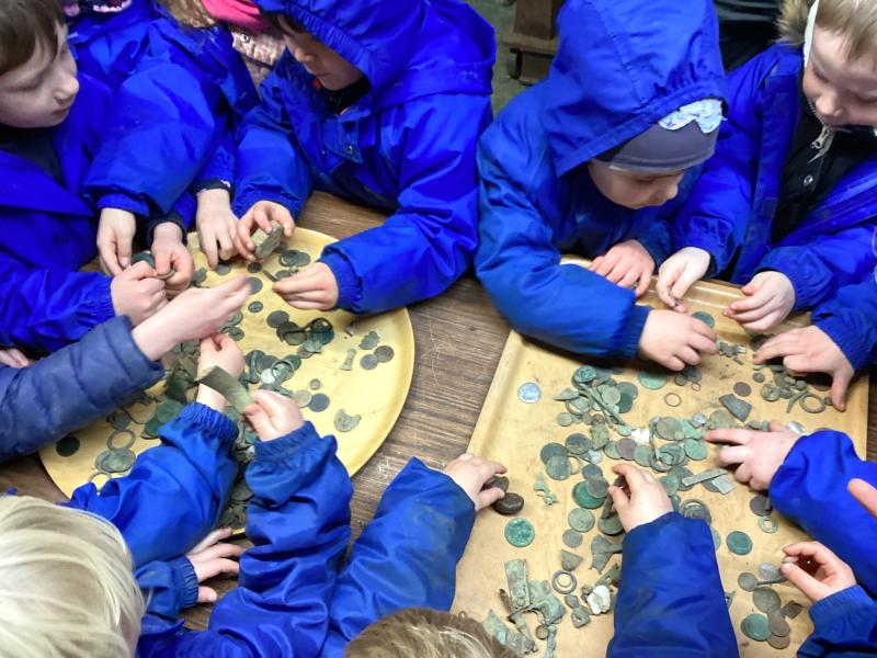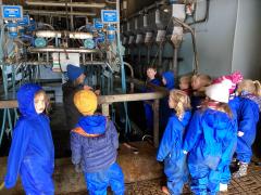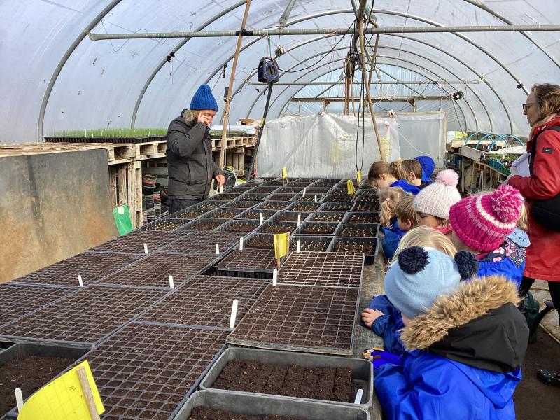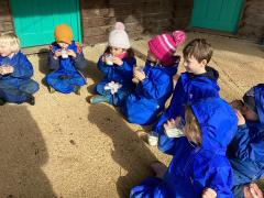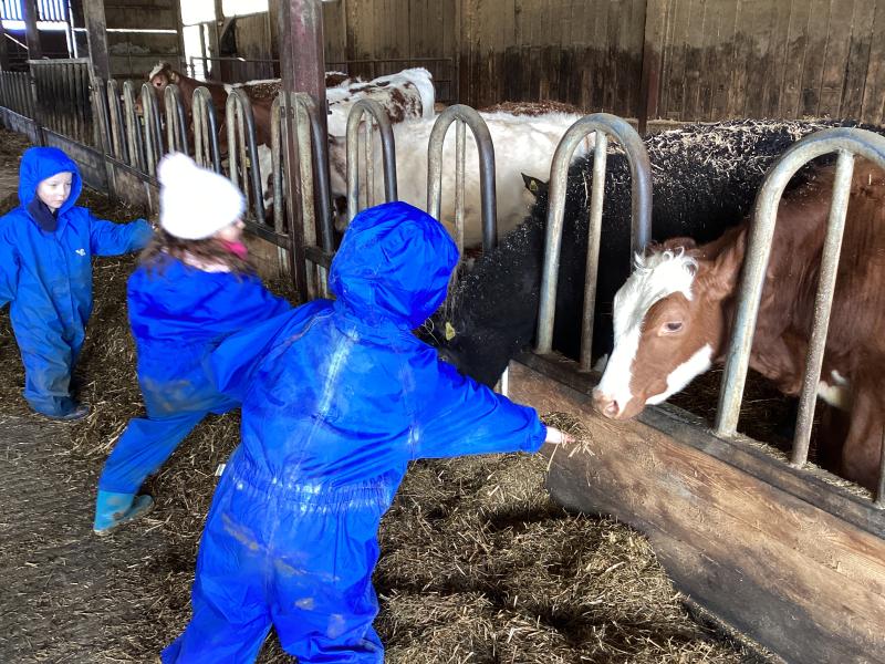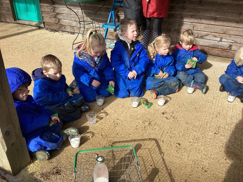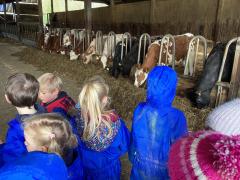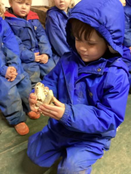 Friday we had such an exciting morning at Abbey Home Farm. Thank you so much to Joey’s mum, who showed us around and also to Will, who let us look at all the exciting things that have been found on the farm, including a woolly mammoth’s tooth, badger skulls, old coins and other artifacts discovered using a metal detector and also how tools are made from flint. Ottilie even managed to cut some rope using a flint. We tasted lots of different things grown on the farm including marigold petals, purslane, kale and rocket. We explored the large greenhouse and polytunnels, saw where the cows are milked – and even got to drink some fresh milk – it was delicious. We also enjoyed seeing the cows and feeding them silage. On the way to visit the cows we all climbed over the gate – even Mrs Cordell and Mrs Duffey!