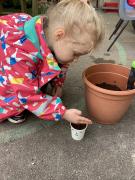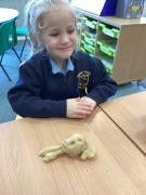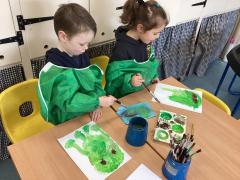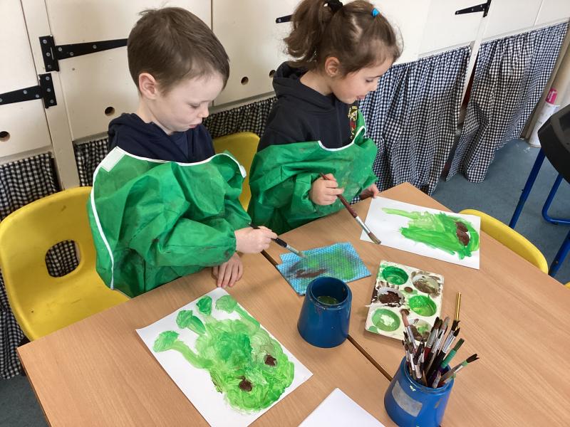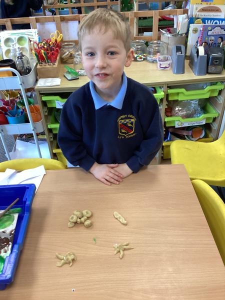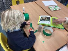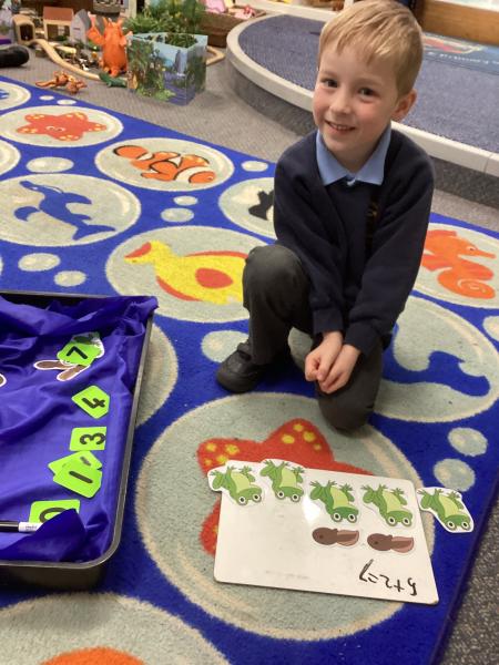 This week we read the story of Tad by Benji Davies and learnt about the lifecycle of a frog. We ordered the lifecycle of a frog, thinking about the words ‘frogspawn’, ‘tadpole’, ‘froglet’ and ‘frog’. Some of the children chose to retell the life cycle of a frog through role play. They were able to clearly explain each stage they were portraying. We have also enjoyed being creative this week making models, stories and paintings during explore and learn.