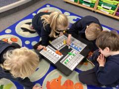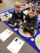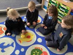 In maths we have been segmenting 7. We used counters, numicon and objects. We are getting really confident in our maths work! We have also been thinking about creating sequences and used the beebots to create sequences to move the beebots.