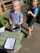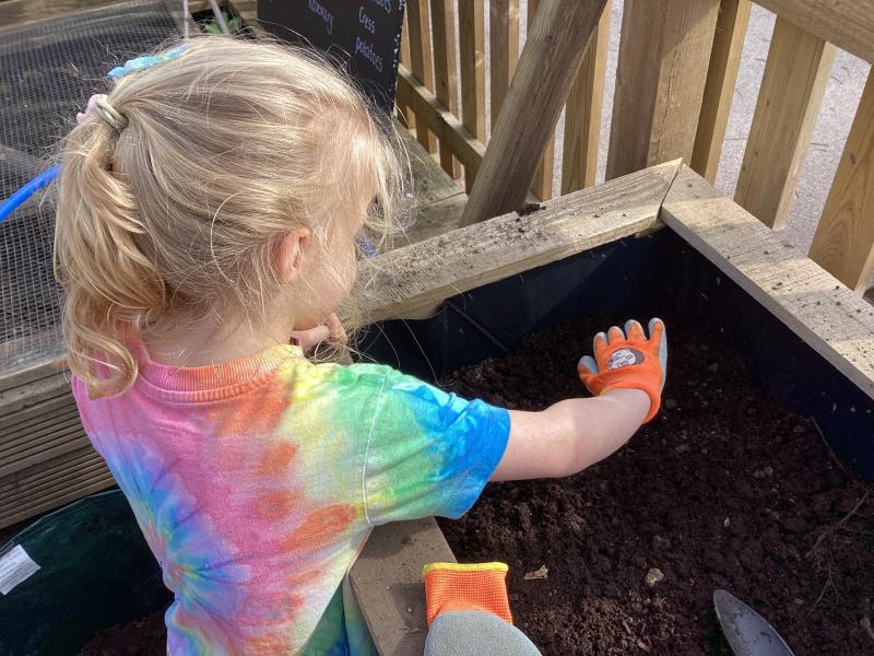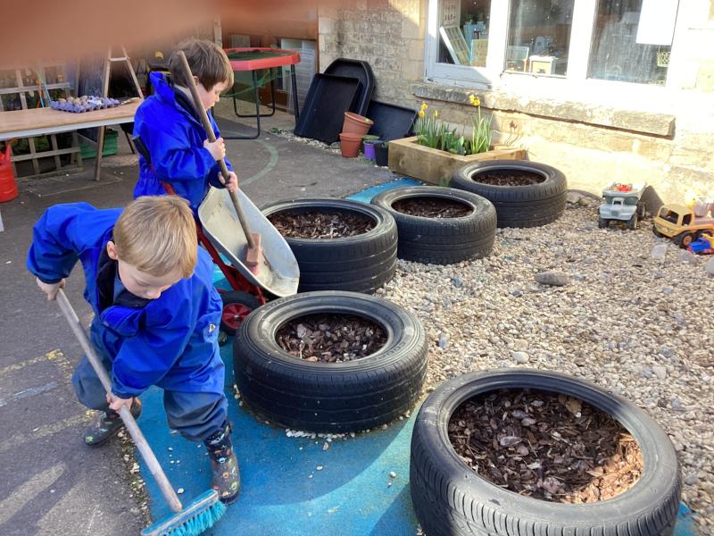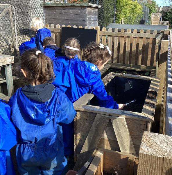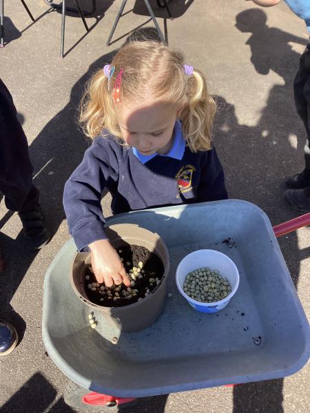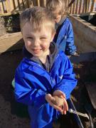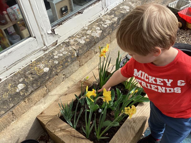 In Forest School this week we did lots of tidying in our Maple garden including lots of weeding, bushing up the stones and planting our potatoes, herbs and strawberry plants. We had a good look at all the beautiful bulbs we planted and all the spring flowers which are growing.