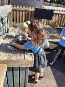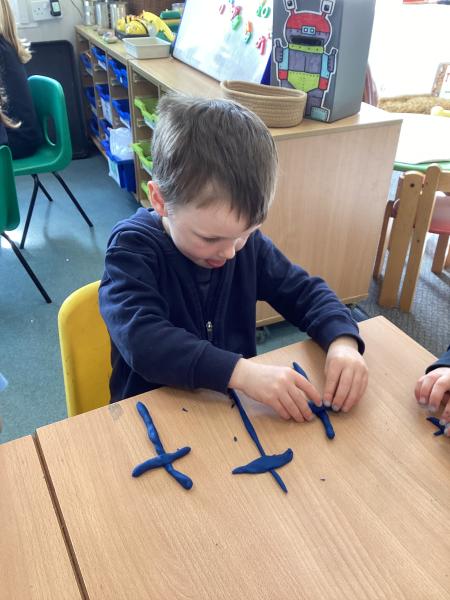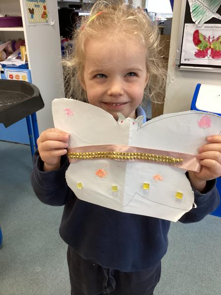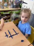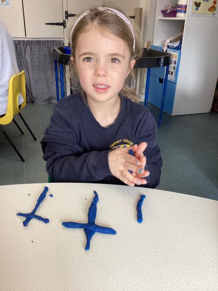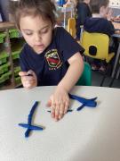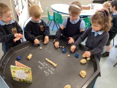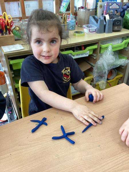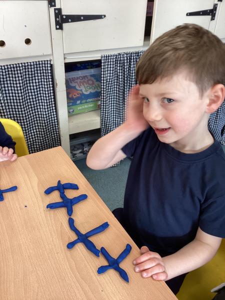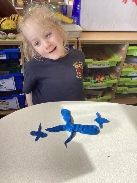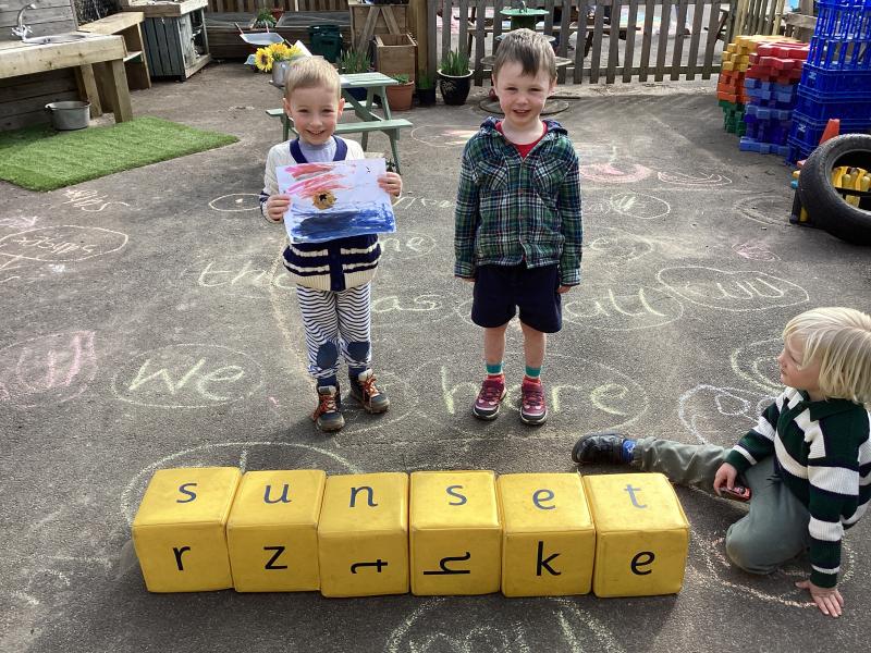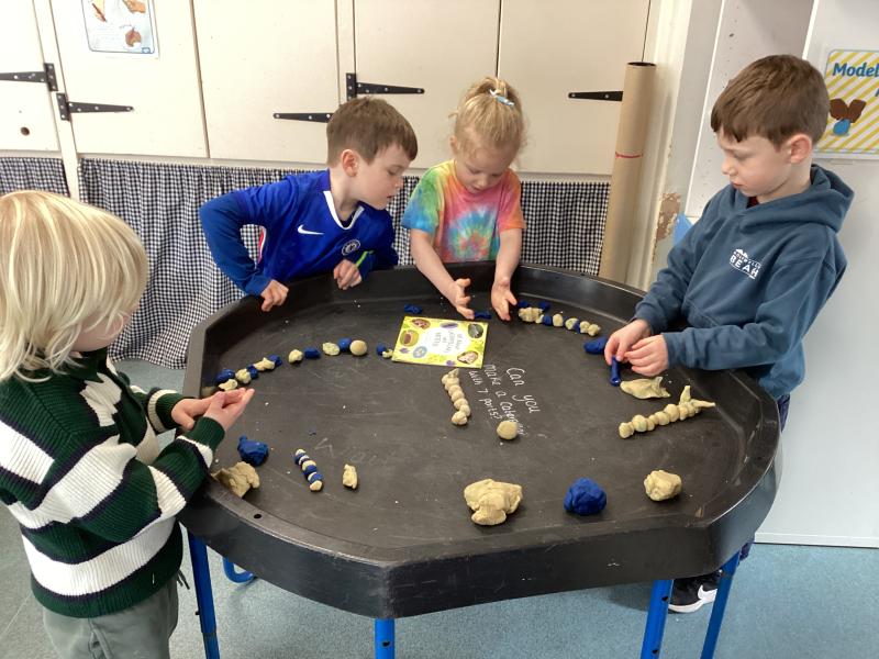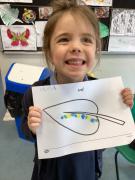 We did lots in Explore and Learn this week – we painted beautiful water colour pictures of the amazing sunrises and sunsets we have been having this week – how great is it to have had so much sun! We looked at the colours and then created our own gorgeous pictures. We also draw them using chalk and labelled them too. We loved being in the mud kitchen this week, writing out menus and taking orders. We have enjoyed making caterpillars using the different coloured play dough, making a repeating patters for the body. We have used scissors to cut out leaves, our scissor skills have improved so much since starting Reception.