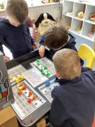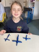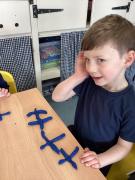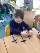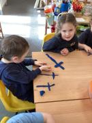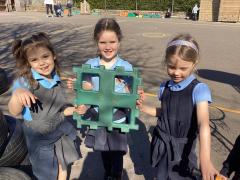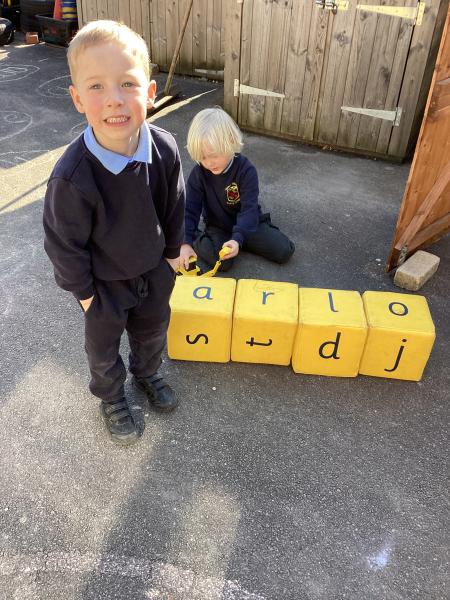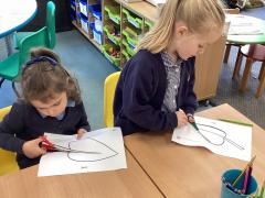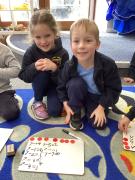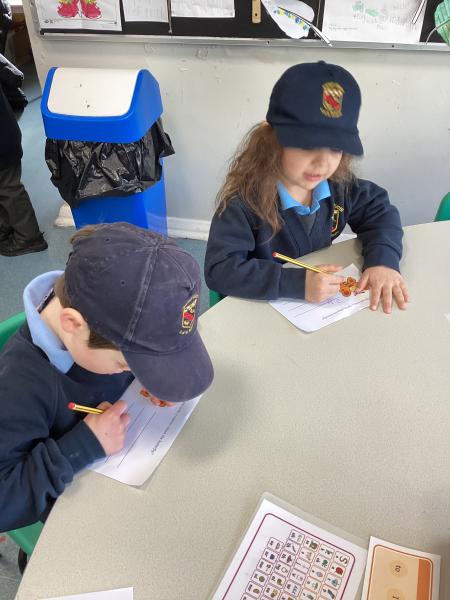 In maths we were taking away from 7 – we wrote down some great number sentences and used coloured counters to help us, working in partners. We also looked at 2d shapes and enjoyed going on a shape hunt around our school looking for different shapes and talking about what we could see.