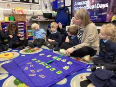 In Maple class this week our book focus has been The Very Hungry Caterpillar by Eric Carle. We thought about the story sequence and used the story telling props to order the lifecycle of a caterpillar.