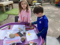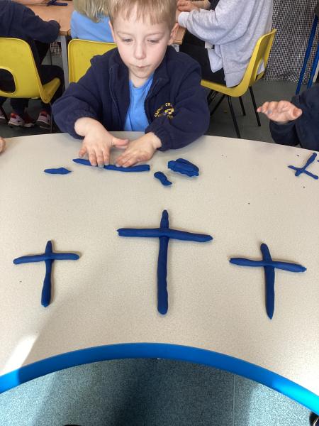 In RE we continued to think about why crosses are put on Easter gardens. We talked about why the Easter story is important for Christians, thinking about how the story moves from sadness to joy and how Jesus loves everyone and will always be with them. We discussesd how Christians celebrate Easter to remember that Jesus is always with them and there is always hope. We thought about how there is new life in the Easter story.