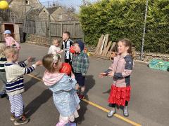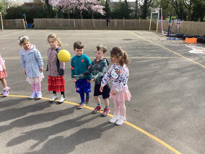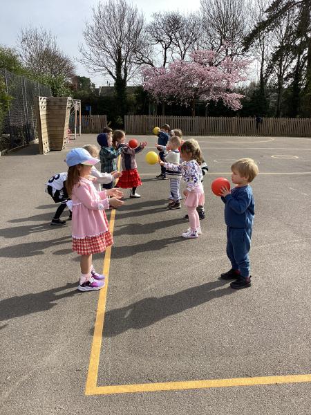 In PE we continued with our ball skills and looked at all the different ways we can throw a ball – over arm, under arm and chest pass – we then practised these with a partner and counted to see how many passes we could do before we dropped the ball. We thought about how our bodies feel when we exercise and the importance of warming up and cooling down.