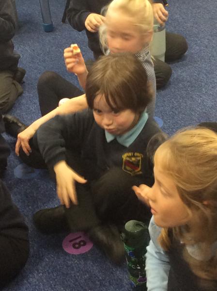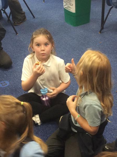 In Science we looked at taste. We enjoyed trying different spreads looking at the flavour of them. Marmite was our least favourite as it was very bitter. We enjoyed the sweetness of the honey and jam. Lemon was very sour.