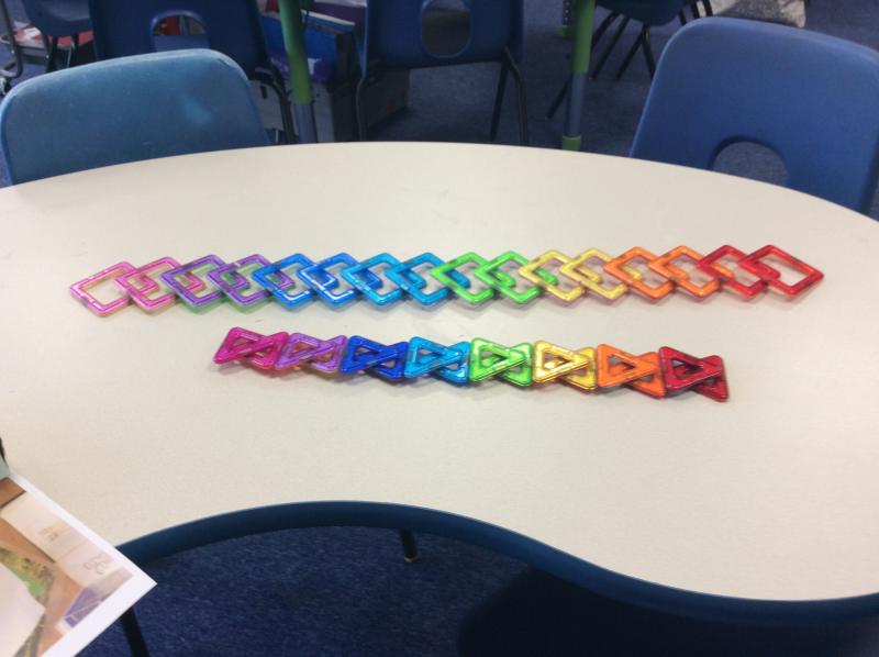 We have also explored patterns with shapes in the maths area, played addition domino and tens and ones games. Some of the year 2s even predicted how many links we had before counting them and measuring the length. We have also enjoyed reading different science books and exploring how magnets work. Mrs Gardener showed some children how magnets worked with trains.