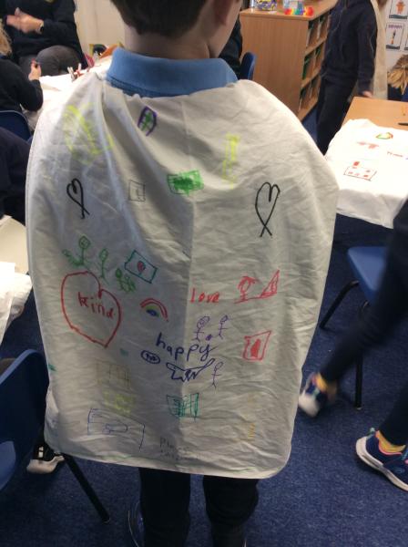 We have got all crafty this week making cards for the local community and today preparing our christingles. We are looking forward to celebrating tonight. We also revisited kindness and made our own kindness capes. Look at the photos they are absolutely amazing! We reflected on how we have been kind and what we can do to be kind to decorate our cape. Remember kindness is our superpower!